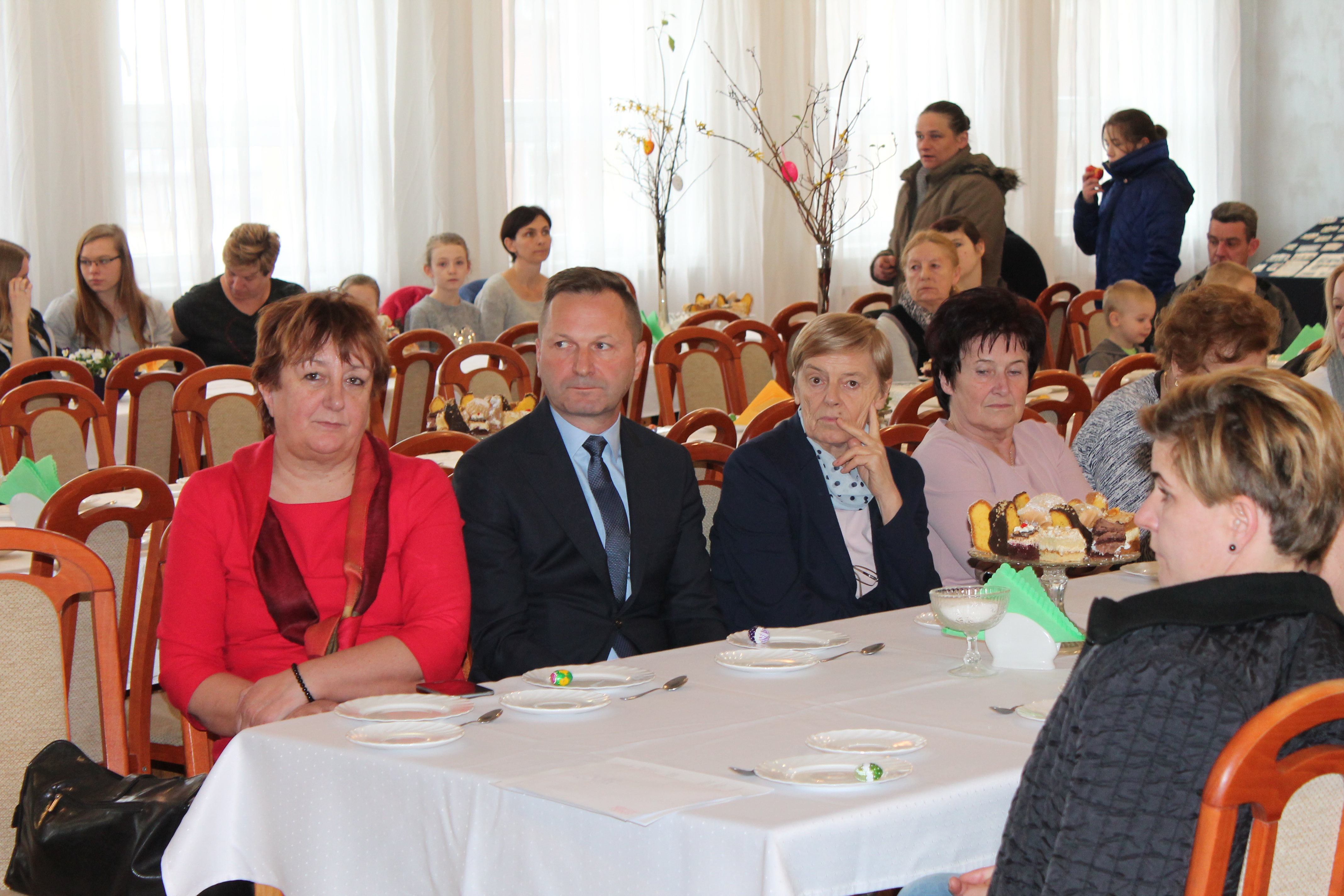 Po zakończeniu części artystycznej przyszedł czas na życzenia, które złożyli Wójt Gminy Lisków Pani Maria Krawiec, Przewodniczący Rady Gminy w Liskowie Pan Aleksander Tomalak, Pan Tadeusz Maciejewski, proboszcz Parafii w Liskowie ks. Andrzej Antoni Klimek oraz kierownik Gminnego Ośrodka Pomocy Społecznej w Liskowie Pani Bożena Humelt. Przy kawie i herbacie oraz cieście wielkanocnym przygotowany według tradycyjnych przepisów uczestnicy spotkania mieli czas na rozmowę i złożenie sobie wzajemnie życzeń.